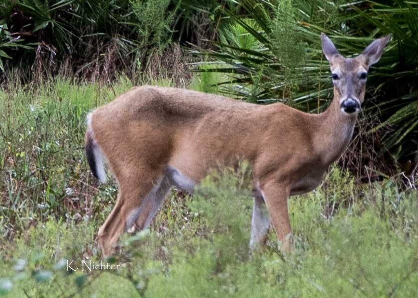 On the way out we saw this doe feeding. She stopped to look, but since a lot of people pass through the Preserve cars rarely cause them to flee.