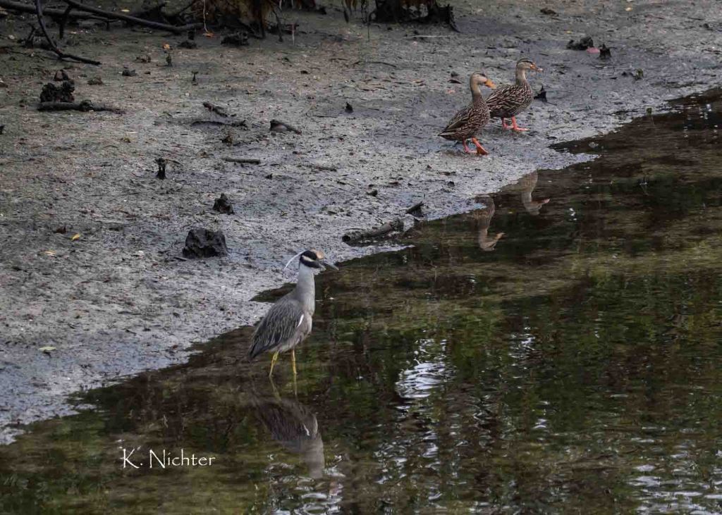 The flock of robins that arrived last month ago flew over. Karl noticed the depleted supply of berries on the trees and shrubs in the area so we don’t expect them to stay much longer. We walked to the deck that overlooks the place where the creek and the Gulf of Mexico meet guessing that any wading birds took advantage of the low tide for a little fishing.