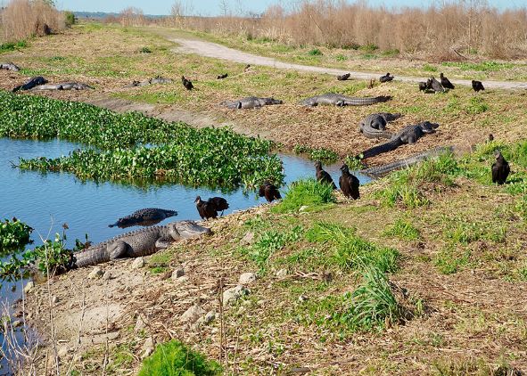 Many years ago we spent nearly half an hour at a standstill on that trail. A large alligator plopped itself across the middle of the trail, in an area where passing safely on either side was impossible due to water. Several of us stood on one side waiting to get back, while many others stood on the other side, hoping to go forward. Finally the alligator decided to move and walked forward, sliding into the water.