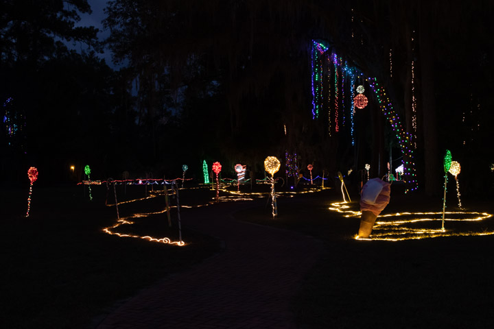 We camped at Stephen Foster Folk Cultural Center State Park in White Springs, FL for a week during their Festival of Lights. We visit here every year around this time for the Festival, but decided to extend it this year. The weather cooperated, the nights stayed cool but the days warmed up to 70 to 80 degrees (Fahrenheit). In the evenings we walked from the campground to the display areas, and walked around the drive-through sections before the traffic and larger crowds arrived.