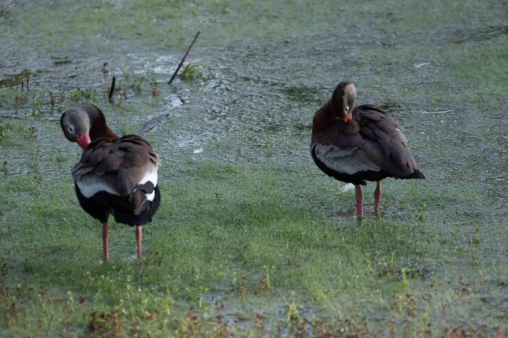 Five Black Bellied Whistling Ducks flew over the first day, circled three times, and left. The next morning two stood in shallow water near the shore. The third morning all five appeared again, two in the water and three on the opposite shore. A conversation on the third morning with a local birder revealed that the ducks, which according to the bird guides shouldn’t be there, make an appearance more often lately.