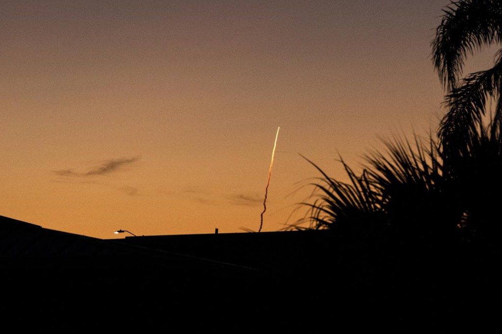 From our house on the coast of west central Florida we can look off toward the horizon whenever Kennedy Space Center launches and sometimes see the launch. Mornings are best, for us at least. The space center lies 125 miles mostly east (slightly north) of us. Last week we saw the first of two launches, at 6:30 a.m. The top photo is the launch as it occurred, the second which I always find more interesting from a photograph standpoint is as the launch progresses and the vapor trail starts breaking apart, and the rising sun starts to change the colors.
