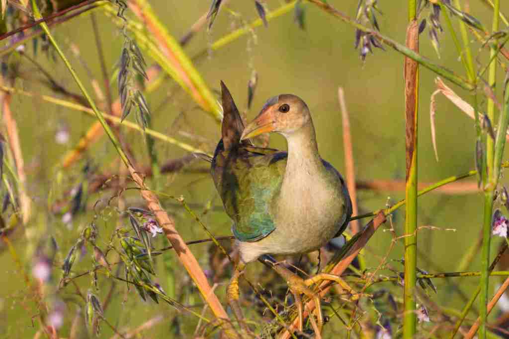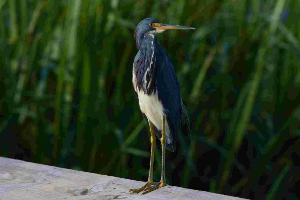 I took a lot of photographs on the last couple of birding hikes we took. Though I try for the more modern bird photos of birds in action, I still like taking portraits. Recent Portraits: Some later migrant warblers heading for warmer climates, though that day our Florida climate certainly didn’t need to be warmer! A Tri-color heron on a boardwalk rail, watching me approach and pass by without flying, just giving me “the eye”. And what I believe is a juvenile Gallinule foraging in a bush.