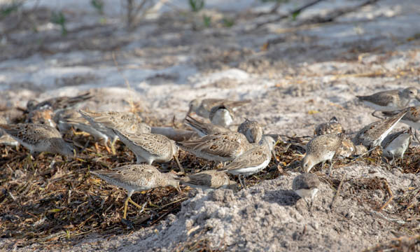 Walking to the less sandy area near a small point I found the bird area. Plenty of shorebirds fed in the seaweed washed up the shore, others walked by or flew by. We spent about an hour there, and liked it so well we checked out a couple of RV parks nearby. We will be visiting again.