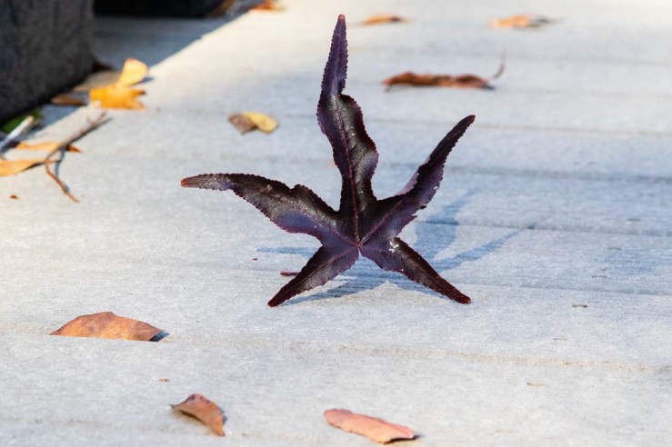 Walking along a boardwalk I saw this leaf, sitting up with other leaves around it. We noticed it and walked by, then I went back and lying on my stomach on the boardwalk I took the shot. The arrangement looked perfect, and disappeared in the next puff of wind. We walked down by the creek, and saw the water down considerably. This bird flew by and took shelter in the roots where normally the creek would flow, puffed up against the cold and wind.