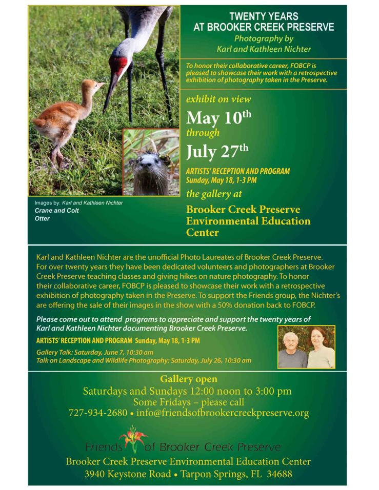 Our photography exhibition at Brooker Creek Preserve, “20 Years At Brooker Creek Preserve: Photography by Karl and Kathleen Nichter” ended July 27. Thank you to everyone who came to see our work and attend the two programs we presented.