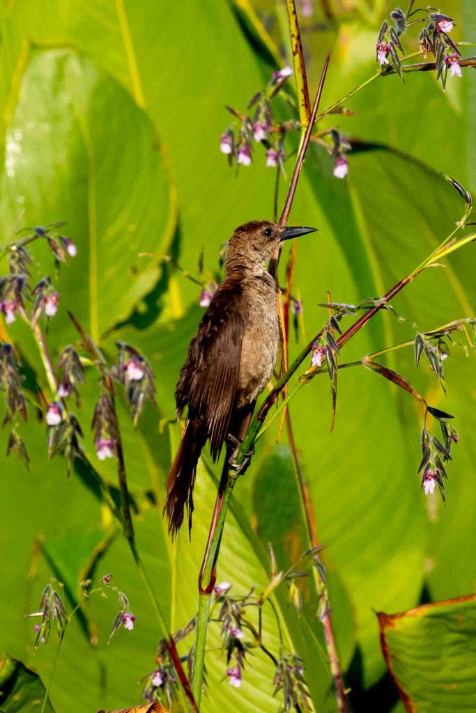 The above juvenile Purple Martin, identified as such as he sat on a perch with adult birds I assume were his parents, watched us walk by. The bird below provided such a nice contrast to its background and the spray of branches I couldn’t resist the shot.