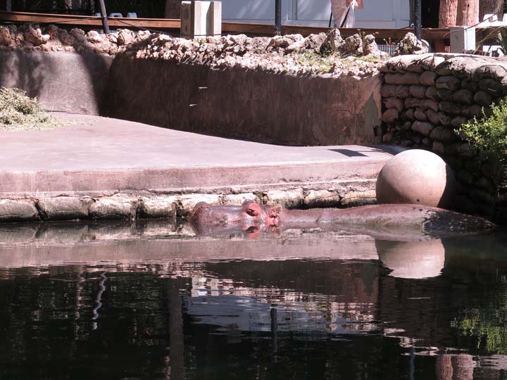Our early arrival meant plenty of room on the boat, so we opted for the boat ride along Pepper Creek. For those who haven’t visited in a year or so like us be aware, the boat ride is no longer free. That was not mentioned at all on the signs showing admission prices at the time of our visit. The tram remains free. We paid the admission fee plus the additional $3 per person and took the boat. The captain gave a narrative interpretation of the creek, flora, and fauna, and also an overview of the park. He mentioned Lu, the 61 year old hippopotamus in residence and the only animal in the park not native to Florida. Lu, or Lucifer as he was known at the time, was granted citizenship of Florida in 1991 and allowed to stay when the park changed its theme and restricted it to Florida animals only. That intrigued our young guests so Lu became the first stop.